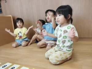 ピアノ組さんは手で数をたたいて数字の英語を言ったり