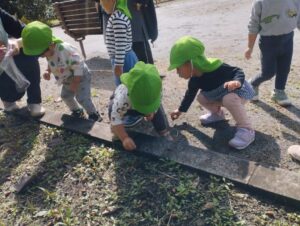 まんまるのどんぐりを見つけて嬉しそうに拾っていました。