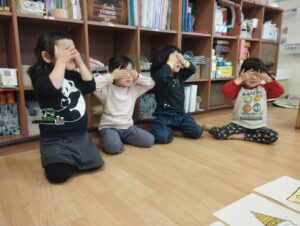 おさるさんが隠れている場所を当てるゲームをしたりしました🐒
