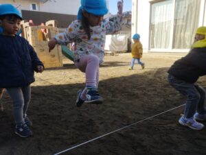 紐に足が引っかからないように注意しながら大きくジャンプをしたり👣