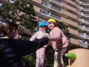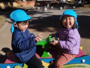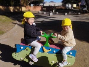 公園ではお友だちと一緒にシーソーに乗ったり☺️