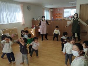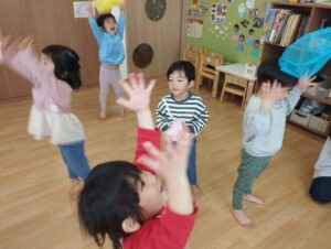 「コンコンクシャン」の歌に合わせて、体を揺らしたり、ジャンプしたりしました!