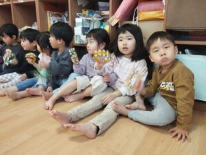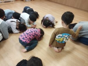 音楽に合わせて、ダンゴムシになったりと、体も動かして、楽しく参加しました🎶