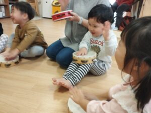 タンバリンやスズなどの楽器をならして演奏したり、ゲームをしたり、楽しんでいました☺