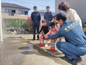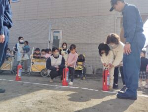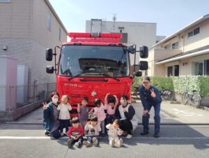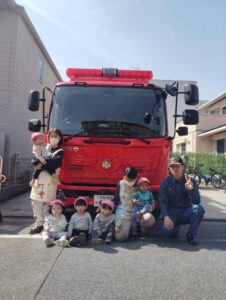 保育園に消防車と消防士さんが来てくれました。