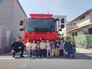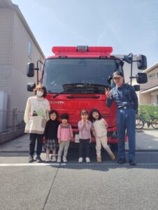 消防車を近くで見た子どもたちはとても嬉しそうにはしゃいでいました。