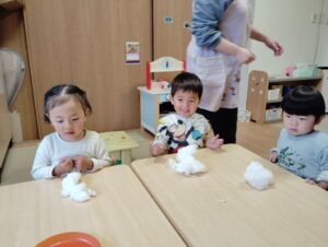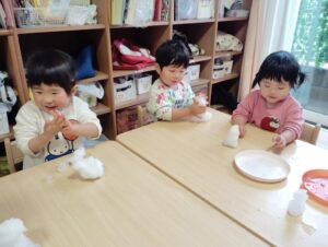 スズ組さんは雪を使って、お部屋で遊びました🎶