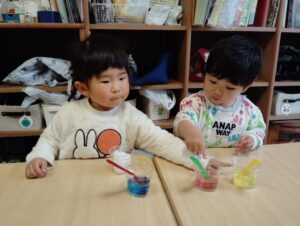 雪を使って、かき氷に見立てて遊びました🍧