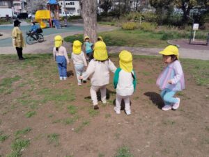お姉さんたちは積極的に3歳児さんの手を繋いでくれて頼もしいです!