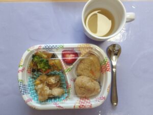 そして給食は、お弁当給食😁昨日タケノコのお話を聞いたよね😋そのタケノコが入ったタケノコご飯だよ😋美味しそう😁