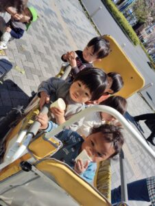 カートに乗ったり、順番に歩いてお散歩を楽しみました💓