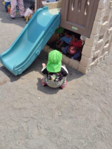 滑り台の下で集まって楽しそうです✨お友だち同士の関わりも増えてきました😊これからが楽しみですね🥰(小)
