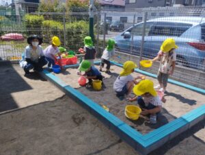 午前中ほんの少しの時間ですがお砂場で遊びました👏✌️
