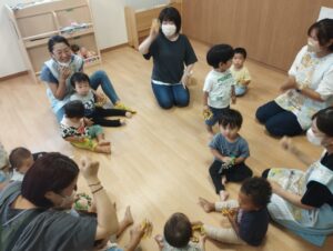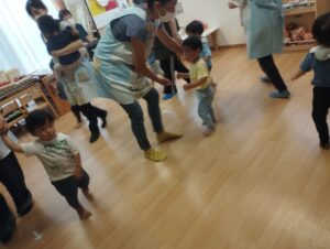 スズ組さんのお友だちのお母さんが保育参加に来てくださり、リトミックに参加いただいています✨