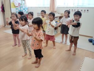 子どもたちは園庭とお部屋でたくさん身体を動かして遊びました。
