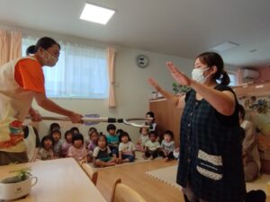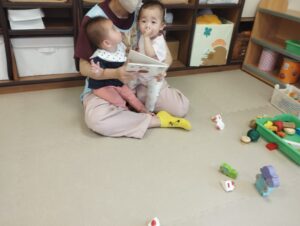 こちらはカスタネット組さん😄先生の膝争奪戦ですね~✌️😄