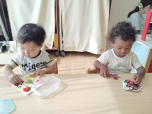真剣にパズルや型はめパズルを頑張ってます。