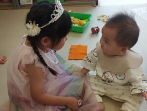 お誕生日のお友達はフワフワのワンピースにキラキラのティアラを付けたプリンセスに変身して色々なクラスをまわります👸✨💕