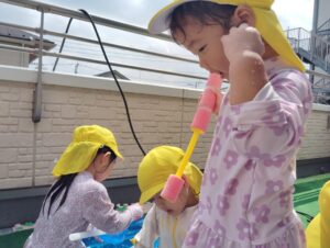 みずでっぽうやボールなどを使って、楽しく遊びました🎶
