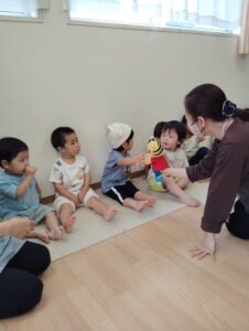 可愛いパペットと英語でお話出来てみんな楽しそう。