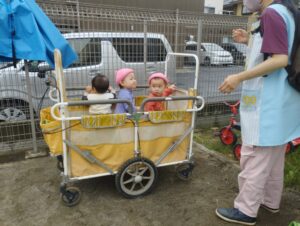 今日は駅周辺に散歩に行きました👣カスタネットのお友達は立ち乗りカートに挑戦中✌️