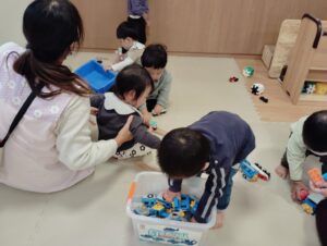 保育園に帰って来てからはお部屋でプラレール。