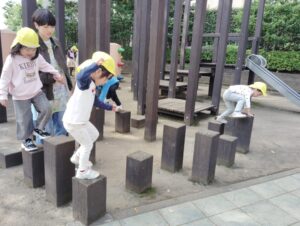難しい遊具に挑戦したり、木の実を拾って遊びました☺️子どもたちに混ざって本気で鬼ごっこしてくれたり、