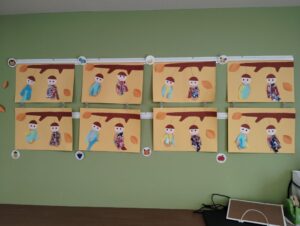 自分で折り紙をちぎり、のりで貼りました。