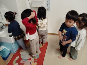ごはん前に手を洗うとしっかりと並んでいました✌