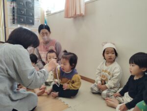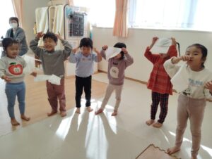 音に合わせてスズを鳴らしたり、止めたり、とっても上手に出来ました✨️
