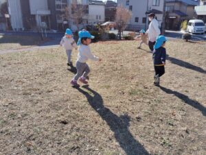 風がとても強くて、飛ばされそうになりながらもたくさん走って元気いっぱいなみんなでした☆