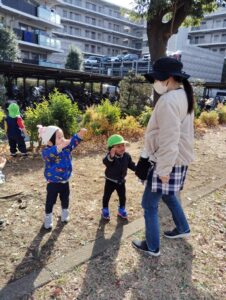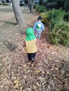 たくさんの落ち葉の上を歩いて、音や感触を楽しむ姿がありました🍂