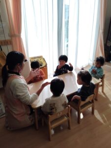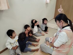 お給食の前にはみんなで集まってお話、手遊びをしました🙌