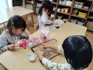 朝から女の子達はお化粧をした顔を鏡でチェックしたり、先生の髪の毛を切ったり、ネイリストになったり、、と大忙しでした♪(荒)