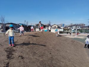 山の上まで走ったり、難しい遊具にも挑戦していました。
