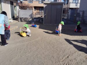 園でも粘土で遊んだり、園庭で遊んだり、いつもと気分を変えてお外で絵本を読んだりと盛りだくさんで、ずっと楽しそうに過ごしている姿が見られました。