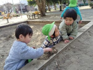 砂場で遊んでいるとお誕生日のお友達に砂のバースデーケーキを作ってくれているお友達がいました🎂💖