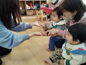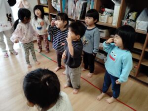 一人ずつ行い「こっちだよ〜」「もう少し右だよ!」と教え合う姿があり微笑ましかったです✨️
