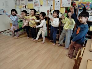 次は音に合わせて踊りました!