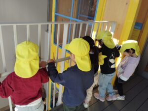 はしごを使って、上までのぼって、下の様子を観察しています☆