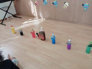 ピアノ組さんがペットボトルを振ると