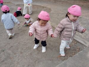 あっちに行こう!と、お友だちと一緒に歩きます💛