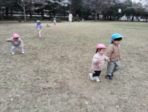 0歳児さんと2歳児さんが仲良く手を繋いで歩く姿も見られました☺ (早)