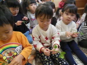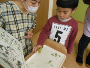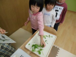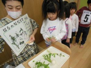 ピアノ組さんは教えてもらった春の七草の名前当てをしました。