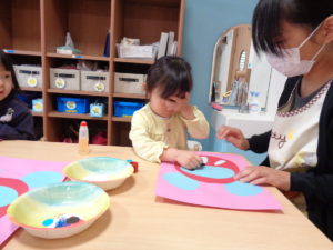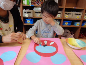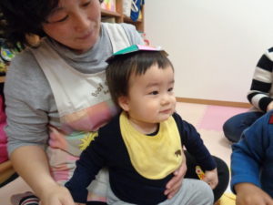 ピアノ組さんも福笑い。目をあけたらビックリ‼きゃははと大笑い。