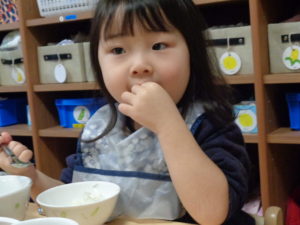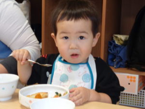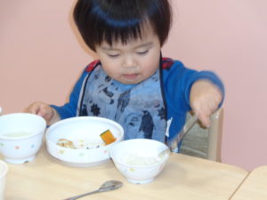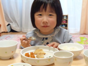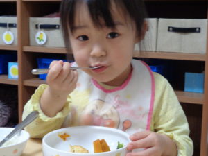 焼き南瓜、ヨーグルトでした。みんないい顔して食べています。😊