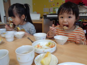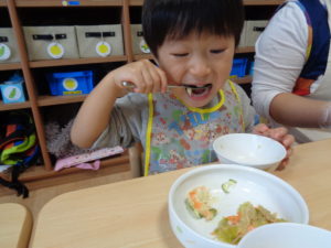 お魚や野菜も好き嫌いなくたくさん食べてくれました。(山)