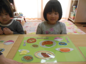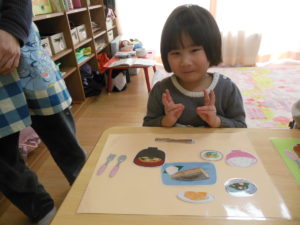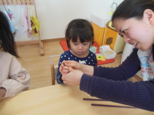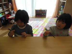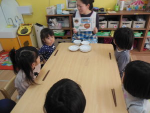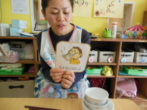 今日はピアノ組さんに食育として、「箸のマナー」がありました。
