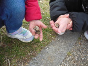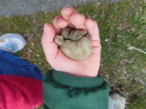 タンバリン組さん「つかれたから、きゅうけい~!」と石集めをしました。