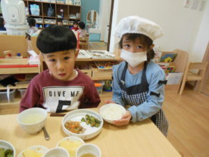 たくさん遊んだ後の給食美味しかったね🍎(未)